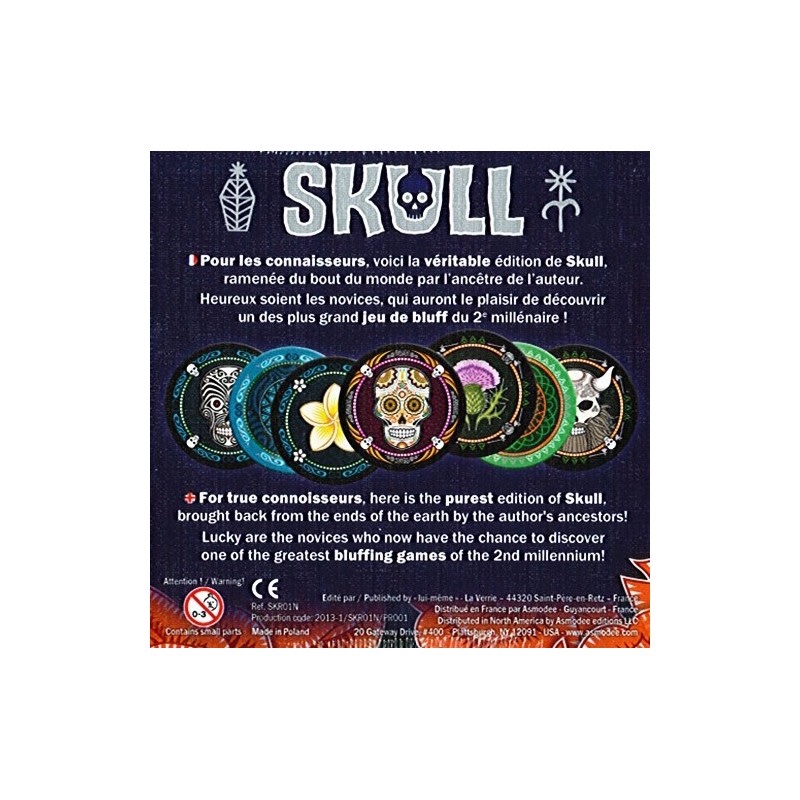 Pour jouer, placez devant vous un tapis face Skull visible. Prenez ensuite en main un paquet de 4 cartes identiques en cachant toujours leur face aux autres joueurs. Chaque joueur pose ensuite une carte Rose ou Skull face cachée sur son tapis en terminant par le premier joueur. Ce dernier peut soit poser une seconde carte, soit lancer un défi.