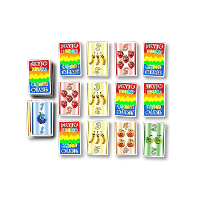 Skyjo Junior est la version pour les enfants du célèbre jeu de cartes ! La règle est différente car les cartes ont des fruits et des numéros afin de faciliter le jeu. Les chiffres de 1 à 5 permettent à l’enfant de compter, dénombrer et associer chiffres et quantité. Choisissez vos cartes astucieusement !  Un jeu passionnant, aux règles simples, rapide et très addictif, à jouer en famille ou entre amis !