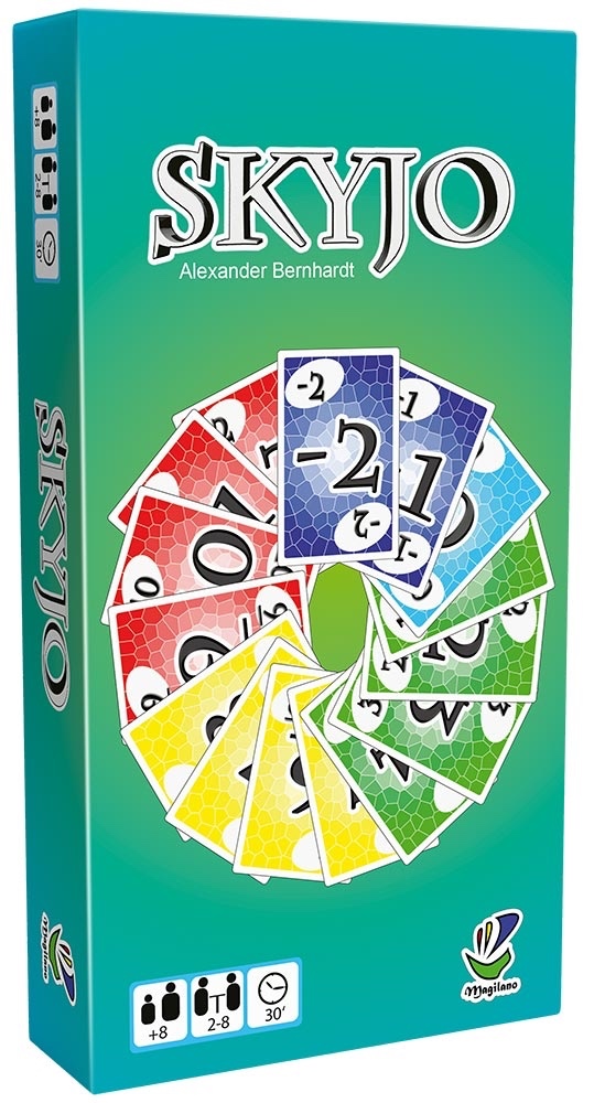 Skyjo est un jeu de cartes passionnant aux règles simples, à jouer en famille ou entre amis ! L’objectif est de recueillir le moins de points possible en inversant, négociant et recueillant des cartes tout au long de la partie, composée de plusieurs tours. Skyjo est addictif, et sera sujet à moult revanches !