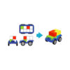 Contenu : 1 châssis en plastique solide qui roule, 4 blocs en plastique de couleur, 1 livret de 24 défis et leurs solutions.