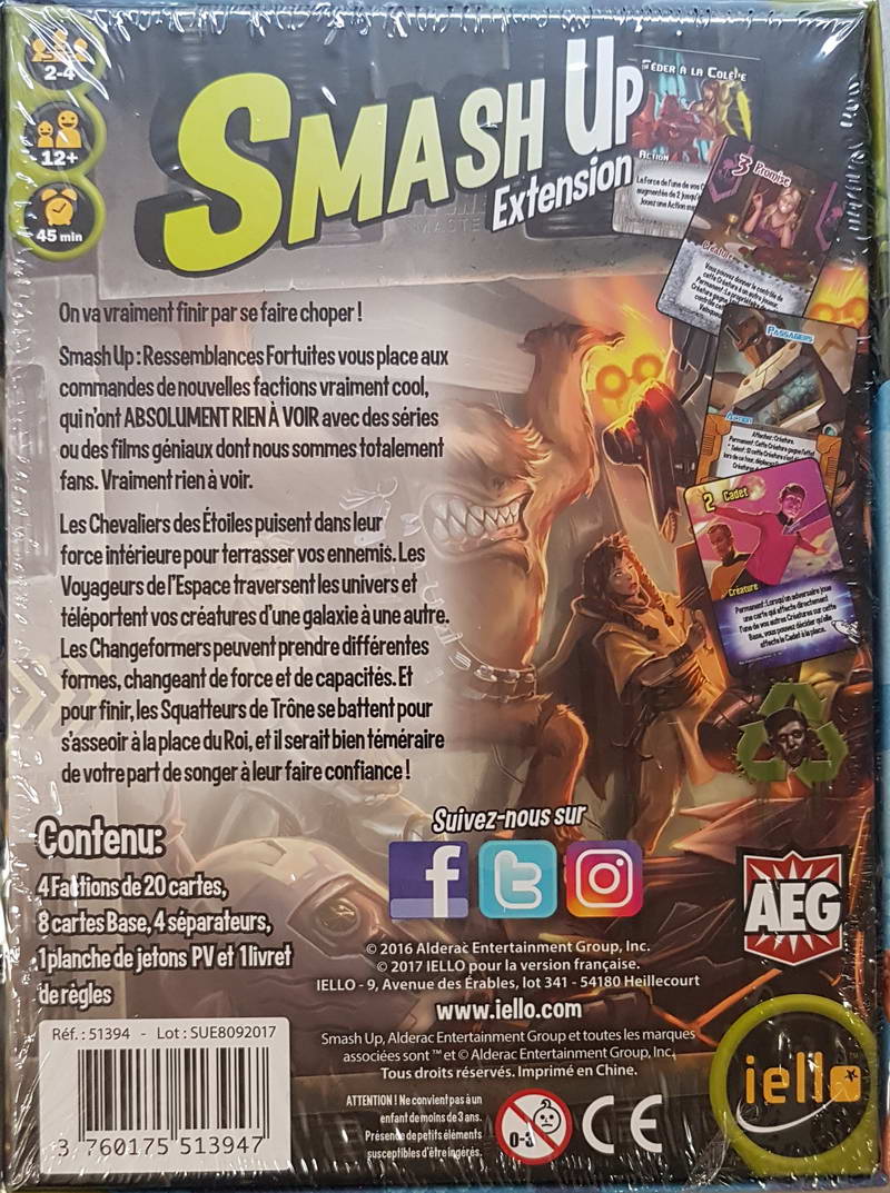 La 7ème extension de Smash Up : on va vraiment finir par se faire choper ! Cette extension vous place aux commandes de nouvelles factions vraiment cool, qui n’ont ABSOLUMENT RIEN À VOIR avec des séries ou des films géniaux dont nous sommes totalement fans. Vraiment rien à voir.