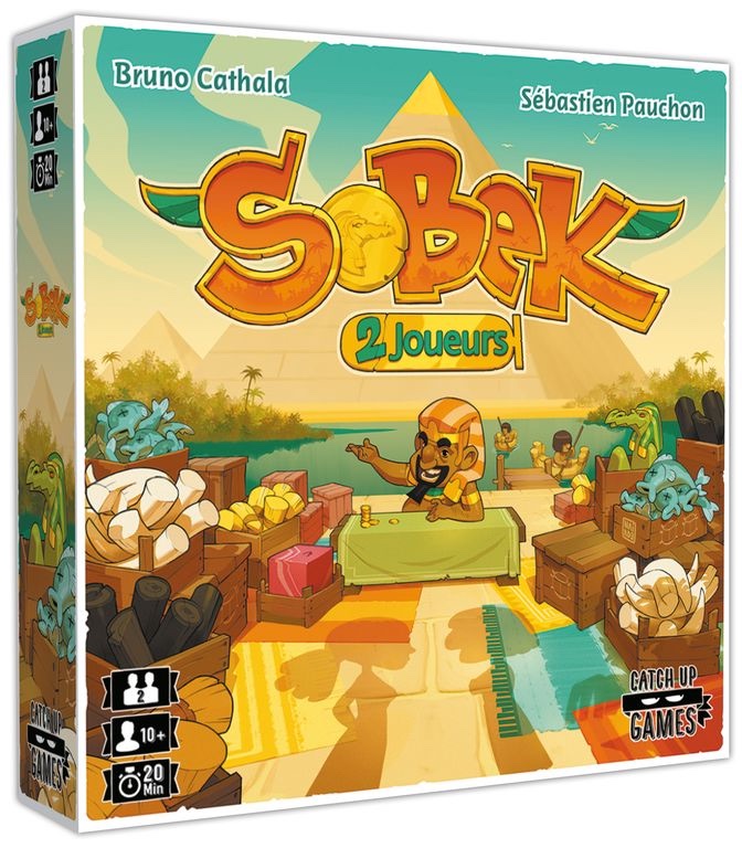 Dans Sobek 2 joueurs, deux adversaires collectent et vendent des Marchandises pour remporter le plus de Points de Victoire. Quand un joueur prend une Marchandise, il en sélectionne une dans l’alignement du pion Ankh et l’ajoute à sa main. Il place alors le pion Ankh dans l’alignement indiqué par la tuile qu’il vient de prendre, déterminant ainsi les choix de son adversaire. Quand il en a suffisamment, le joueur peut vendre un lot d’au moins 3 tuiles de même type. Ces tuiles lui rapporteront des Points de Victoire en fin de partie, en fonction de leur quantité et du nombre de Scarabées qu’elles présentent. Mais les joueurs peuvent également compter sur les puissants pouvoirs de Personnages pour renverser la tendance. Tout est ici question de tempo : analyser les possibilités de son adversaire pour jouer les meilleurs coups et remporter la partie !