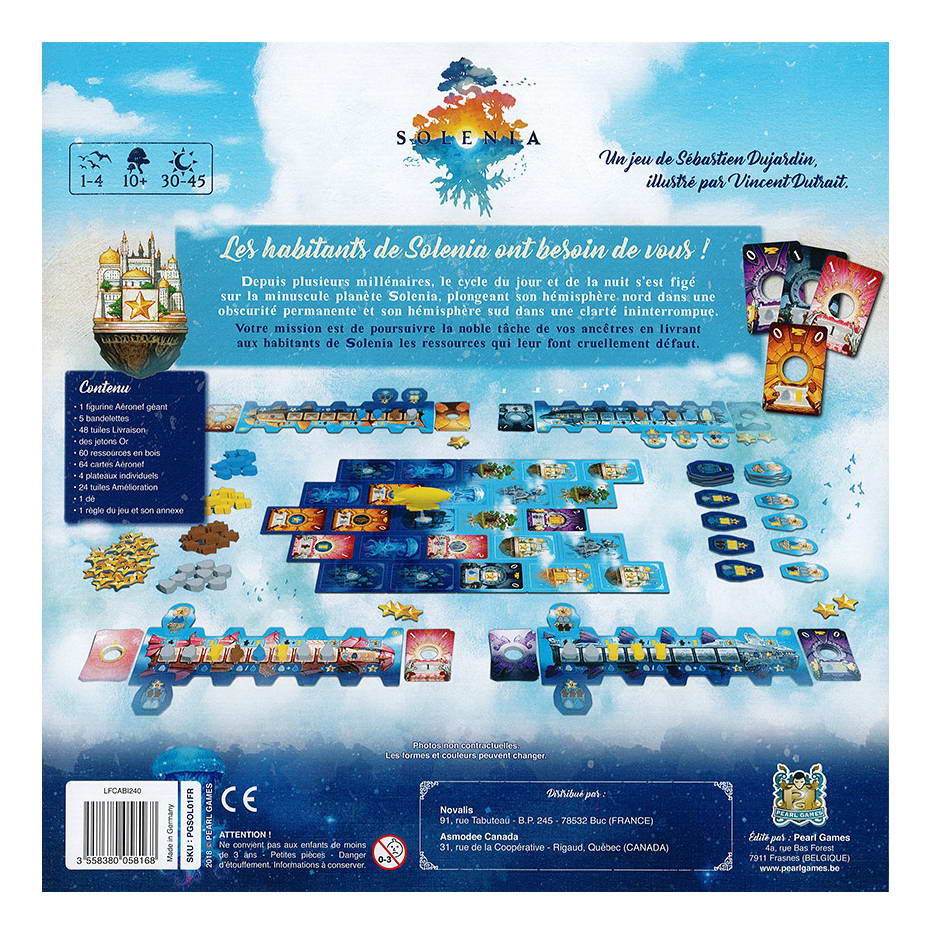 La planète Solenia a perdu son cycle de jour et de nuit. A vous de livrer aux habitants les ressources essentielles. Solenia est un jeu de stratégie pour 1 à 4 joueurs.