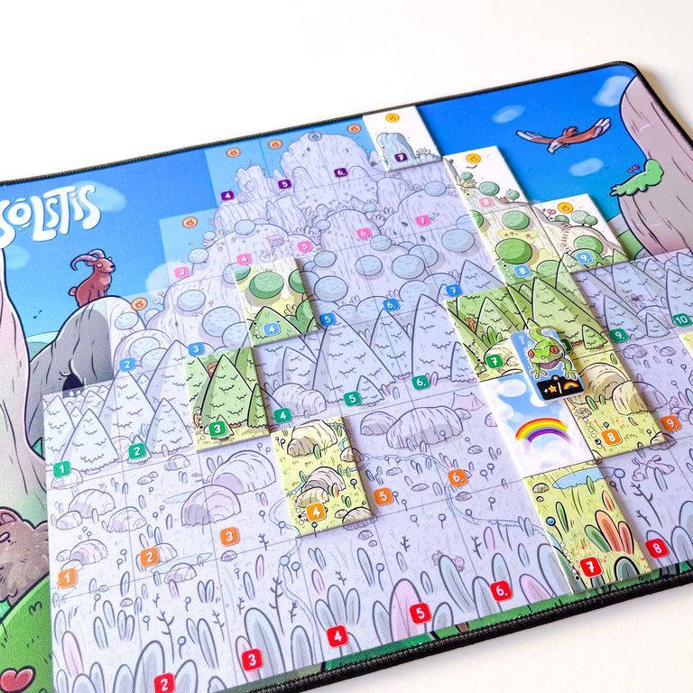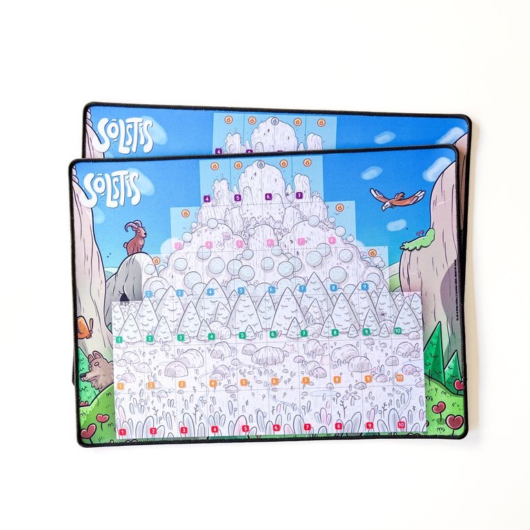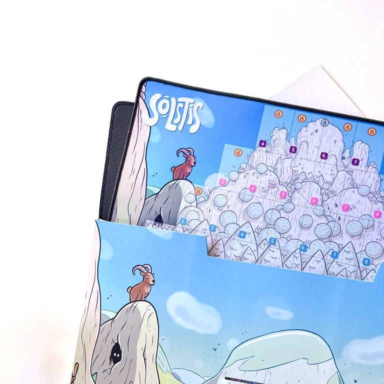 SOLSTIS est un splendide jeu stratégique pour 2 joueurs, où le placement précis des tuiles dans la montagne peut faire toute la différence. Avec ce kit de 2 tapis individuels, fini les approximations ! Chaque emplacement est soigneusement tracé, permettant à chaque tuile de trouver sa place exacte. Vous pourrez ainsi vous concentrer pleinement sur votre stratégie sans perdre le fil de la partie. Les tapis sont accompagnés d’une élégante pochette de rangement illustrée, qui ne se contente pas d’être pratique : elle inclut également une aide de jeu au dos, détaillant les pouvoirs des Esprits. Une combinaison parfaite de confort, esthétique et fonctionnalité !