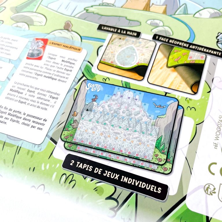 Points forts : L’aide de jeu ultime pour SOLSTIS. Une superbe pochette illustrée, avec le rappel des pouvoirs Esprits au dos. Chacun son tapis !