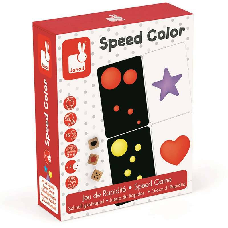 Speed Color de Janod est un jeu de rapidité avec 2 niveaux de difficultés. Pointe au plus vite la carte représentant le résultat des dés lancés.