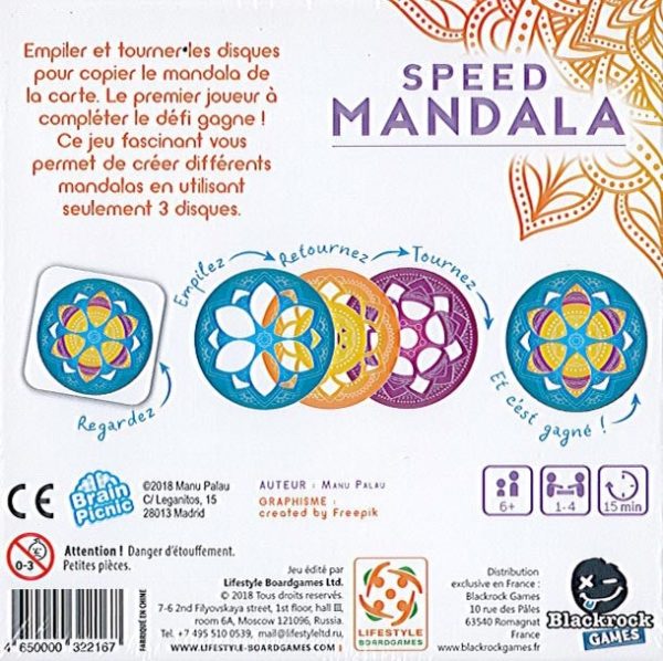 Speed Mandala, un jeu de rapidité haut en couleurs. Reproduisez rapidemment les illustrations mandalas représentés sur les cartes défis.