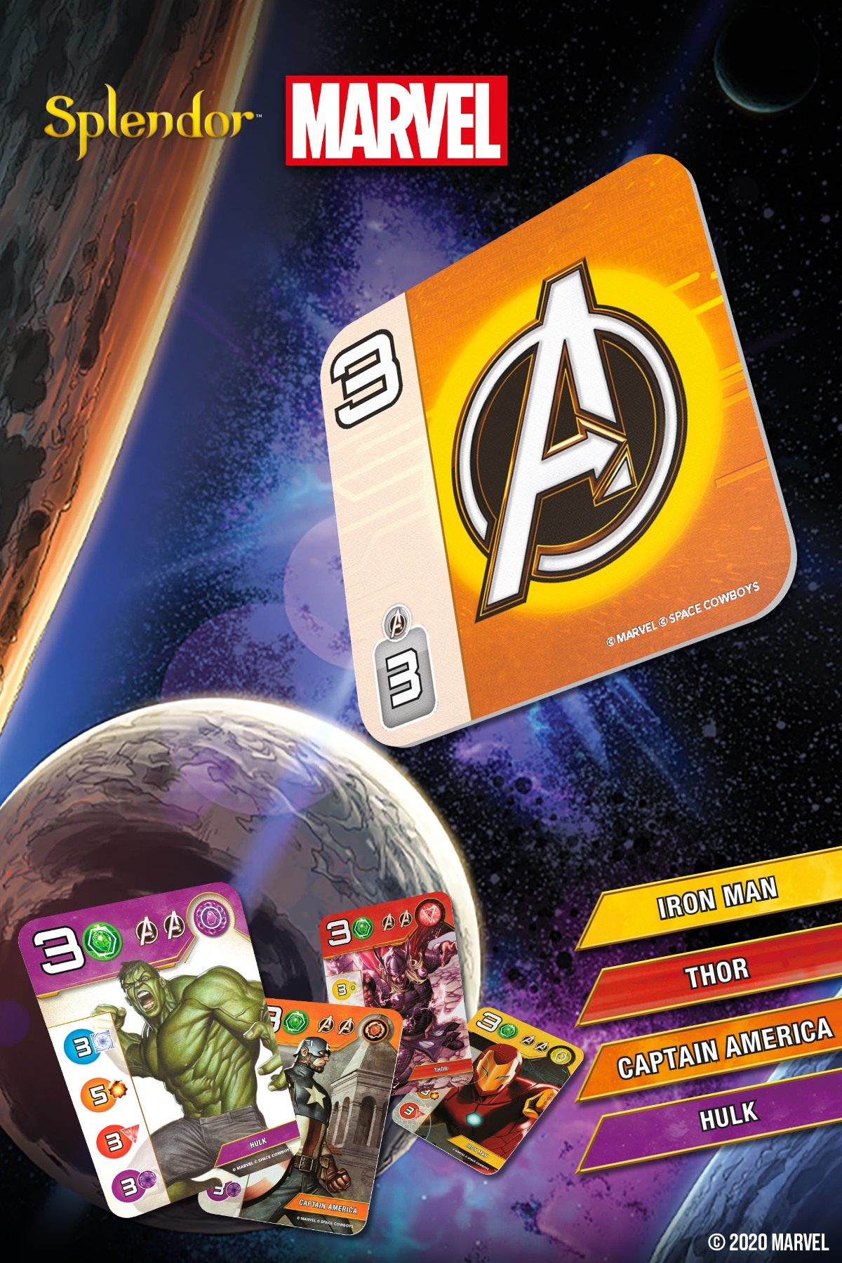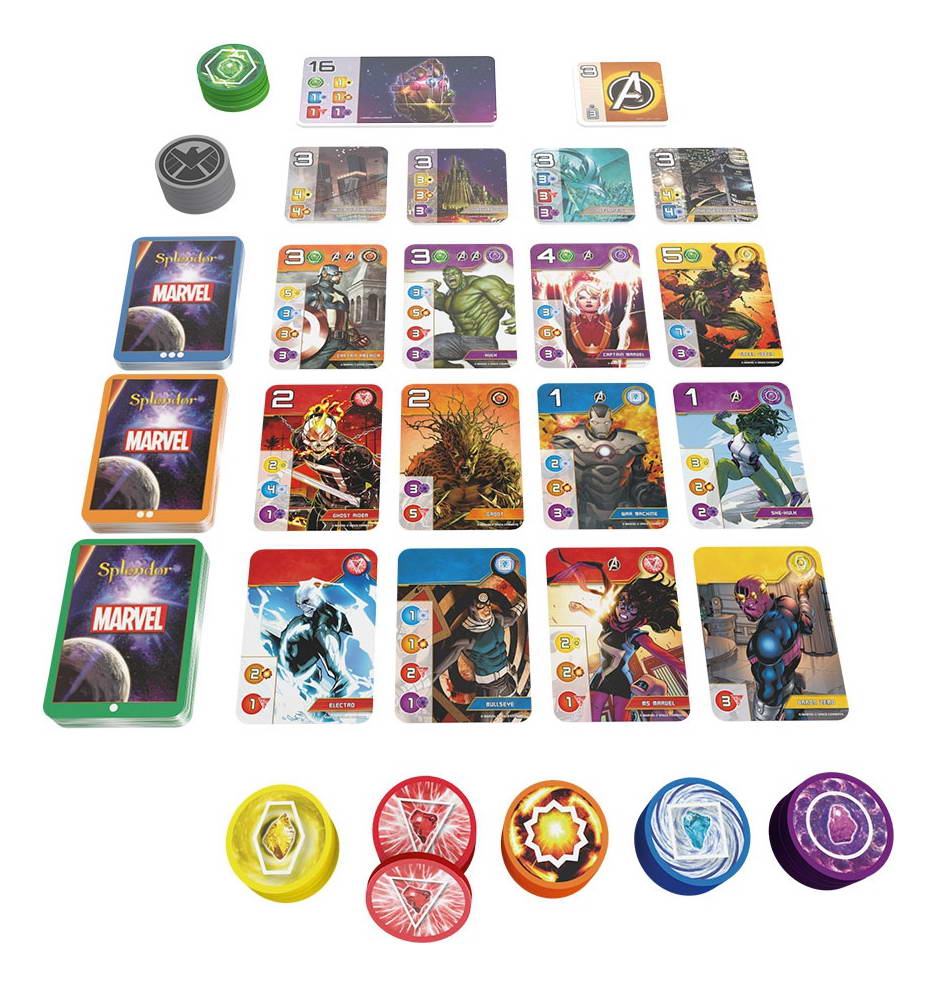 Cette version alternative de Splendor est entièrement thématisée et illustrée avec les héros MARVEL ! Elle propose des règles légèrement modifiées pour la thématique super-héros, pour toucher un large public et les fans du Splendor classique.