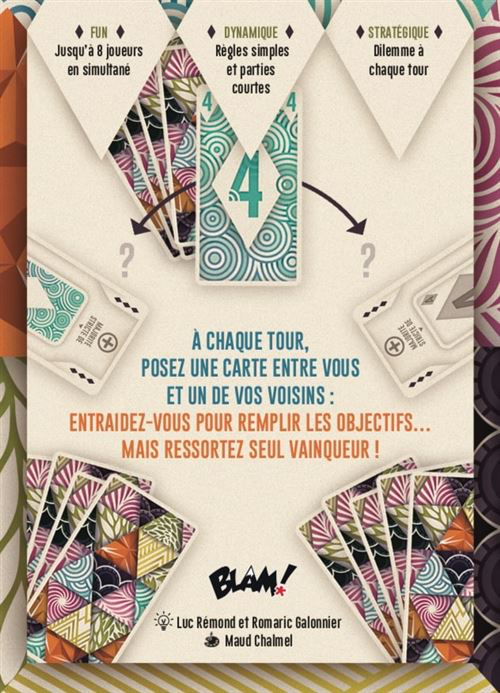 • Facile d’accès • Parties rapides, quel que soit le nombre de joueurs (jusqu’à 8 !) • Forte interaction avec ses 2 voisins • Dilemmes forts • Ambiance autour de la table • Made in France