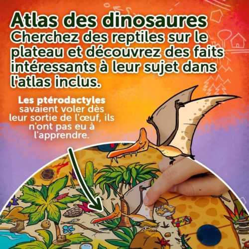 L’atlas ajouté aux instructions rempli de faits intéressants au sujet des dinosaures apporte une note de connaissance pour dévelloper et assouvir la curiosité des enfants. Ce jeu constitue un cadeau idéal pour tout petit amateur de dinosaures, que ce soit pour un anniversaire, ou noël. Il permet également de passer des moments inoubliables !