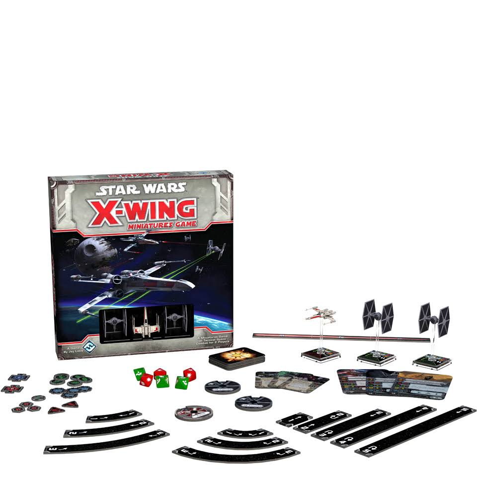 Cette boîte contient tout ce dont deux joueurs ont besoin pour commencer très rapidement une partie de X-Wing : des vaisseaux en plastique prépeints, des dés spéciaux, des cartes, des marqueurs et une version simplifiée des règles. Vous y trouverez aussi des règles avancées et des missions spéciales qui donneront une tout autre dimension tactique au jeu.