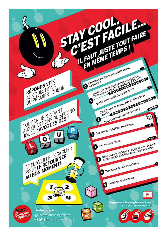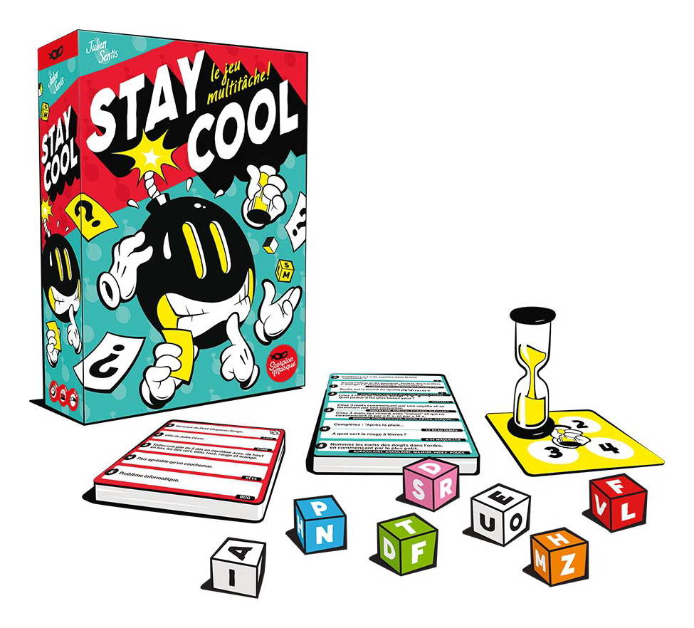 Stay Cool, le jeu multitâche ! Voici un jeu d’ambiance unique, explosif, tendu et drôle à la fois, où la vitesse prime… Autant que le sang-froid !