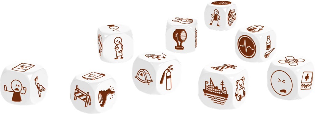 Lancez les dés et créez une histoire en utilisant les 9 symboles obtenus pour vous guider. Votre histoire peut être sérieuse ou totalement délirante, courte ou débordante de rebondissements axées sur l’urgence, le médical et le sauvetage.