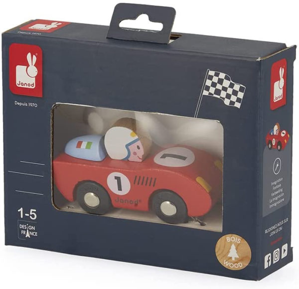 Story Racing « Speed » de Janod. Bolide en bois avec roues plastiques. Collectionne les nombreux modèles de la gamme Story Racing : Speed, Formule 1, Retromotor, Roadster et Racer. Design réalisé en France.