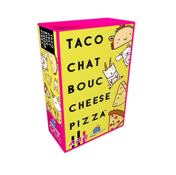 Un jeu de cartes très fun et rapide… Taco chat bouc cheese pizza est un jeu de défausse complètement frénétique et farfelu ! Pour jouer de 2 à 8 joueurs, à partir de 8 ans.
