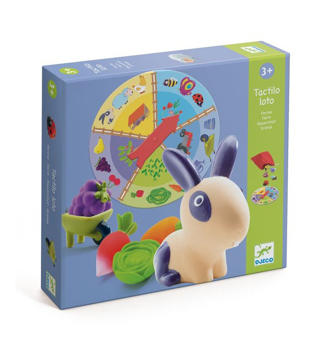 Tactilo Loto Ferme de Djeco est un jeu éducatif original de reconnaissance tactile. Votre enfant devra retrouver les figurines en 3D demandées uniquement par le toucher dans un sac. Une belle expérience sensorielle !