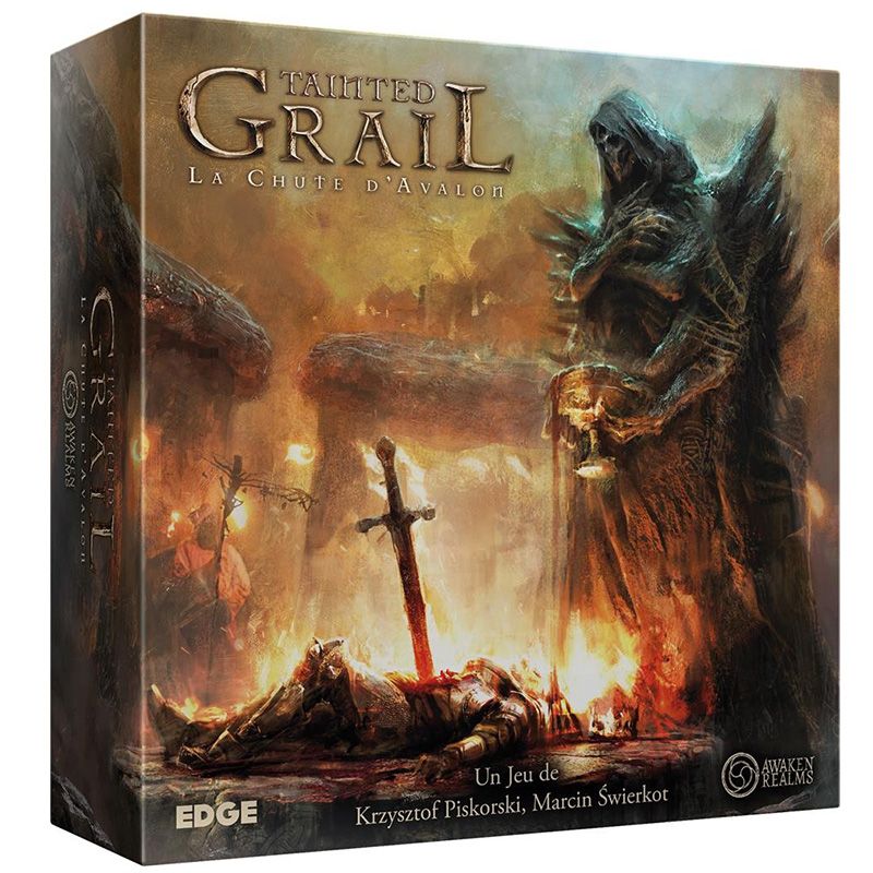 Tainted Grail – La Chute d’Avalon entraîne de 1 à 4 joueurs pour leur survie dans une aventure narrative au cœur d’un univers sinistre qui puise son inspiration dans les légendes arthuriennes et les mythes celtes, réinterprétés de façon inquiétante, unique et sombre par les auteurs et illustrateurs d’Awaken Realms.