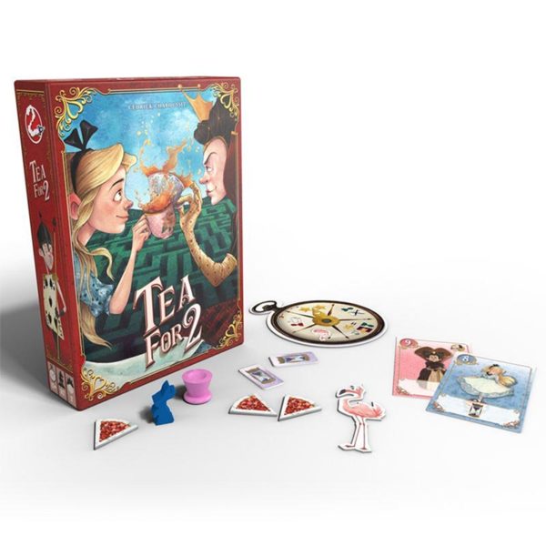 Tea time pour Alice ! Alice et la Reine de cœur s’affrontent à nouveau dans une partie de cartes mêlant bataille et deck-building. Tea for 2 c’est des règles faciles pour un jeu stratégique et riche de choix dans l’univers d’Alice au pays des merveilles.