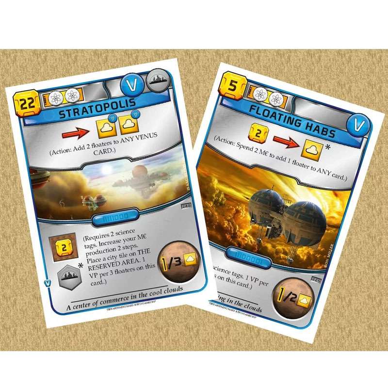VENUS NEXT vous permettra de terraformer Vénus et de fonder de nouvelles cités au sein du système solaire intérieur. Vénus, l’étincelante, doit être une des planètes les plus meurtrières du système solaire… mais elle dispose d’un tel potentiel ! Perchés dans les nuages corrosifs, loin de la surface brûlante, les humains ont commencé à coloniser et à terraformer la planète.