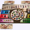 Le grand plateau central abrite la piste de score sous la forme d’un circuit en spirale. On trouve aussi une ligne du temps divisée en 10 zones sur lesquelles les joueurs devront parier. D’autres zones colorées sont des zones de défis :