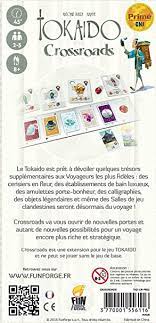 Crossroads contient 5 nouveaux types de cartes, de nouveaux voyageurs et 1 plateau de jeu additionnel. Il s’agit d’une extension et le jeu de base Tokaido est nécessaire pour y jouer.