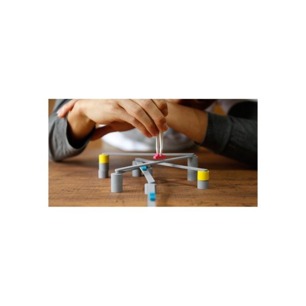 Ce jeu contient : 40 voitures (4 sets de 10 voitures par couleur), 1 pince, 4 bâtiments, 36 routes, 80 piliers gris, 8 piliers jaunes et la règle du jeu.