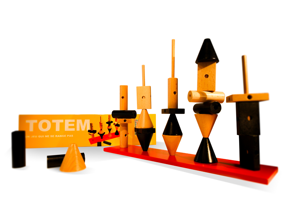 Totem fait partie d’une gamme de jeux inventés et édités par Philippe Proux, qui nous propose un packaging éco-responsable, en bois issu de nos forêts et de carton recyclé.