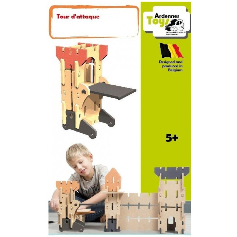 Tour d’attaque d’Ardennes Toys. Méfiez-vous de cette tour qui peut cacher n’importe quel preux soldat prêt à bondir derrière son pont levis. Avec ses 14 pièces, cette tour de la gamme My Castles fait l’unanimité. Les pièces de la tour s’assemblent sans clous ni vis et sera une extension parfaite pour tous les modèles de la gamme et trouvera sa place dans les constructions imaginaires de tout châteaux. Designé et fabriqué en Belgique.