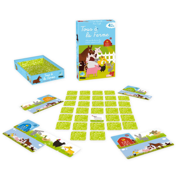 Tous à la ferme de Sweet November, Vite, vite il faut mettre les animaux à l’abri avant la nuit ! Les plus petits rentrent en premier, les plus grands en dernier… Un jeu de mémoire rapide et original.