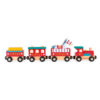 Ce beau train en bois magnétique est génial pour découvrir l’univers du cirque. Le train est composé d’une locomotive, 3 wagons et 1 cheval pour partir à l’aventure !