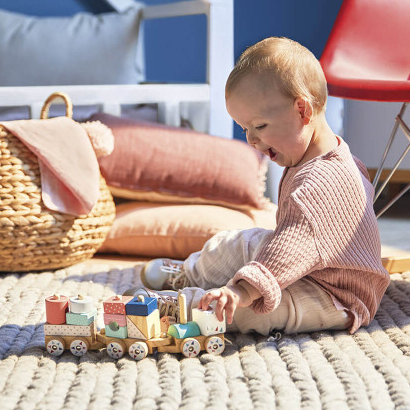 Dans un premier temps, votre tout-petit devra construire le train composé de 3 wagons pour favoriser sa motricité. Ensuite, il pourra promener son jouet grâce à sa ficelle dans tous les recoins de la maison et ainsi faire voyager son joujou au bout du monde ! Les jouets à promener permettent aux enfants de développer leur motricité fine et d’encourager les déplacements. Ce jeu en bois est composé de 14 blocs colorés avec différentes formes géométriques pour que l’enfant apprenne les couleurs et effectue ses premières constructions.