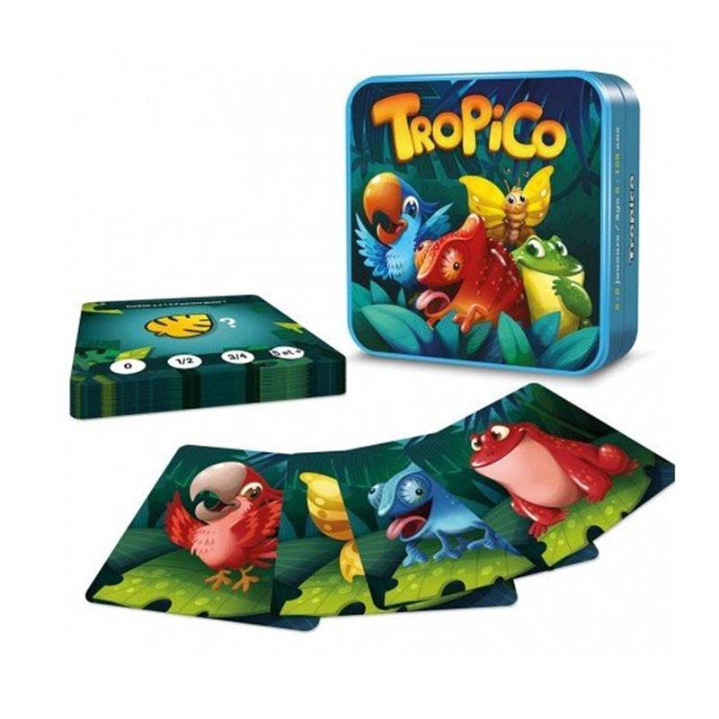Dans Tropico, explorez la jungle tropicale et observez la faune. Un jeu de mémoire familial, coloré et fun, pour réunir toute la famille !