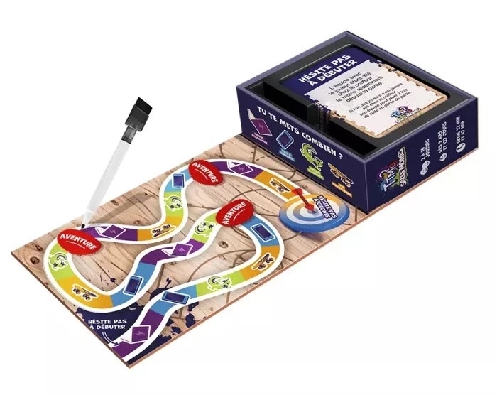 C’est drôle, accessible à tous les enfants (sages ou infernaux), et il y a de quoi faire : 162 cartes et 835 questions, avec la présence de cartes originales pour pimenter la partie. Et pour couronner le tout, d’astucieux stickers sont fournis afin de pouvoir jouer en famille sur un même plateau (TTMC 1 ou TTMC 2) !