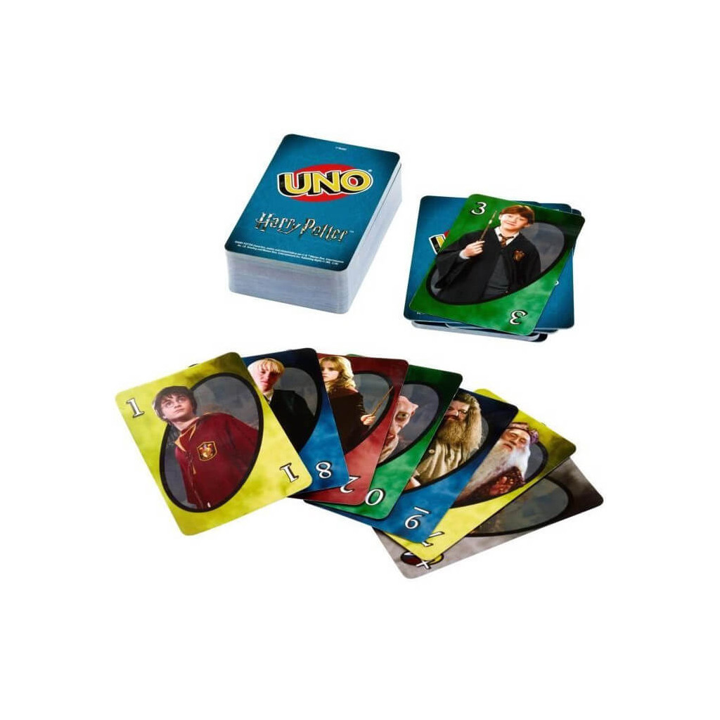 Comme le Uno classique, mais avec des images de Hermione, Harry, Ron, et plein d’autres personnages de l’univers magique de Harry Potter !