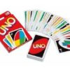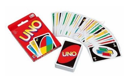Contenu : 108 cartes numérotées de 0 à 9. 8 cartes « +2 ». 8 cartes « Inversement de sens ». 8 cartes « Passe ton tour ». 4 cartes « Joker ». 4 cartes « +4 ».