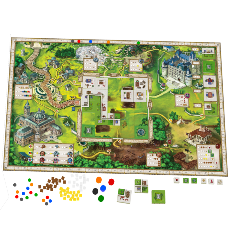 Contenu : 1 plateau de jeu, 40 tuiles Palais, 30 jetons de décoration, 10 jetons mouvement, 45 miniatures d’ouvriers, 5 marqueurs d’activation, 20 marqueurs de technologie/score, 90 ressources, pion du roi. Regles du jeu.