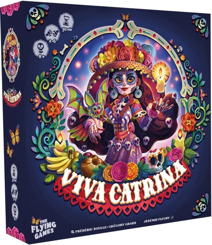 Viva Catrina… Créez le plus beau Village pour célébrer le Día de los Muertos en collectant ballons, chimères, visiteurs et papillons à travers un astucieux placement de tuiles. Posez des tuiles avec soin, collectez ballons, chimères, visiteurs et papillons pour offrir une fête inoubliable. Le joueur ou la joueuse ayant accumulé le plus de points de victoire l’emporte.