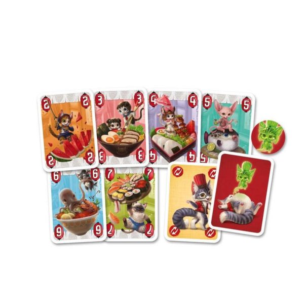 – Manger un plat : piochez autant de cartes que la somme des cartes en jeu tout en espérant ne pas de tomber sur une carte Indigestion.