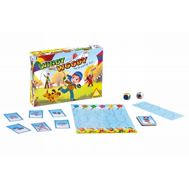 Règle du jeu : Choisis de jouer avec 1, 2 ou 3 plaques de fils, pour un labyrinthe plus ou moins compliqué, et en suivant un des 4 différents mécanismes de jeux ! Pour le premier, lance le dé de couleur, cherche l’enfant qui tient le cerf-volant de cette couleur, regarde ces vêtements et trouve celui qui est de la même couleur que le cerf-volant. Pour le second, commence pour trouver le cerf-volant qui n’a nulle part la couleur du dé. Pour le troisième, suis les 2 cerfs-volants qui ont les noeuds de la couleur du dé… et pour la quatrième, c’est l’autre dé qui décide comment on joue… Perds pas le fil !