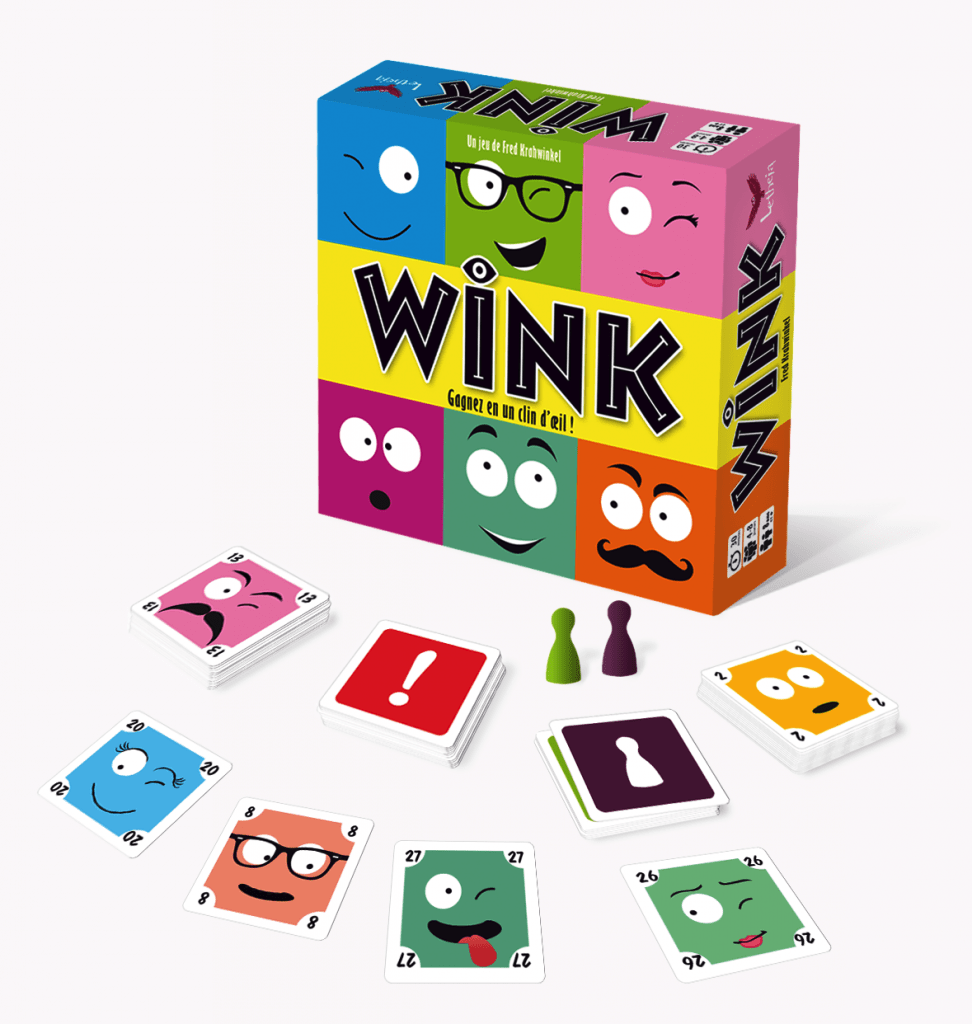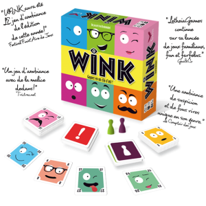 Contenu : 72 cartes WINK, 32 cartes Révélation, 8 cartes Joueurs, 8 pions de couleur.