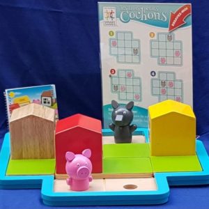 Les joueurs doivent construire la maison de brique afin d’y mettre les 3 petits cochons avant que le loup les attrape et les mette dans la marmite !