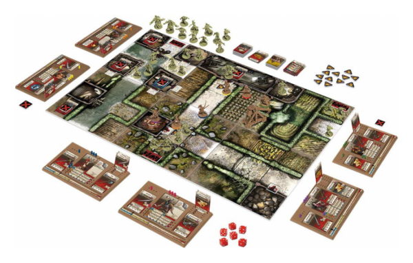 Avec vos amis, formez une équipe de survivants dans un monde médiéval fantastique, maîtrisez leurs compétences et venez à bout des hordes d’orques infectés! Les zombies sont contrôlés par le jeu à l’aide de cartes et de règles simples. Jouez 10 quêtes sur 10 plateaux différents composés à partir des dalles modulables de cette boîte, ou créez vous-mêmes vos propres scénarios. Trouvez des armes ! Tuez des zombies ! Plus vous tuez de zombies, plus vous devenez puissant et plus les zombies sont nombreux !